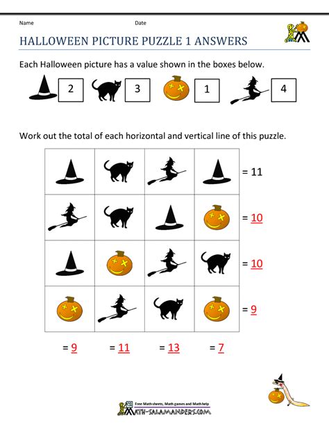 Free Halloween Math Worksheets