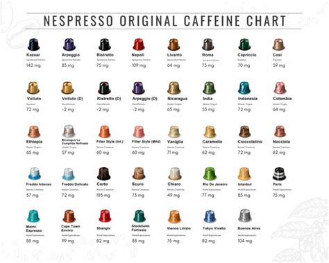 Printable Nespresso Caffeine Chart. Web the amount of caffeine in each cup of nespresso coffee made with pods can vary depending on the type of pod used. Web on their us website, nespresso mentions an average of caffeine content per each type of pod: