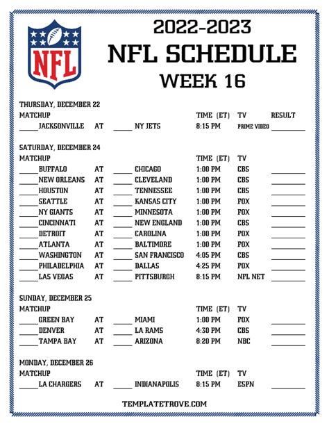 Printable Nfl Schedule Week 5. Web 13 rows all scheduled nfl games played in week 5 of the 2023 season on espn. Web specific dates, start times, and networks for week 18 matchups will be determined and announced following the conclusion of.